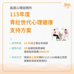 島語心理諮商所配合衛福部「115年度青壯世代心理健康支持方案」,