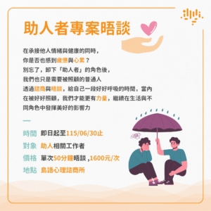 服務地點:島語心理諮商所 (臺北市文山區羅斯福路六段10號4樓之2)