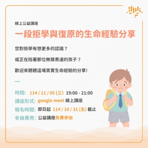 一段拒學與復原的生命經驗分享|免費線上公益講座